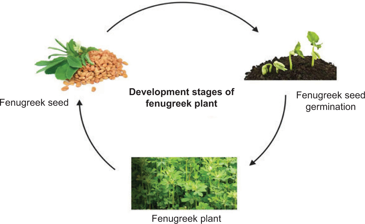 Fenugreek, scientifically known as Trigonella foenum-graecum (L.) is a remarkable herb with a long history of culinary and medicinal usage. This versatile plant has gained attention for its diverse health benefits, including its potential in preventing and managing a variety of diet-associated diseases, such as inflammation, hypertension, cardiovascular issues, diabetes, and cancer (Syed et al., 2020). The incorporation of medicinal herbs such as fenugreek into dietary choices has become increasingly common as these plants offer a safe and nutraceutical-rich approach to promoting well-being without disrupting the body’s natural physiology. Furthermore, fenugreek, often utilized as a spice in human food, stands out as one of the most famous plants, well known for its ability to provide valuable functions (Shadab et al., 2024). Different development stages of a fenugreek plant are shown in Figure 1.