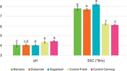 The SSC was determined with a portable refractometer (RS PRO; Milan, Italy) at 20°C and expressed as °Brix. The pH was measured with a pH-meter (Hach Company; Loveland, CO, USA).