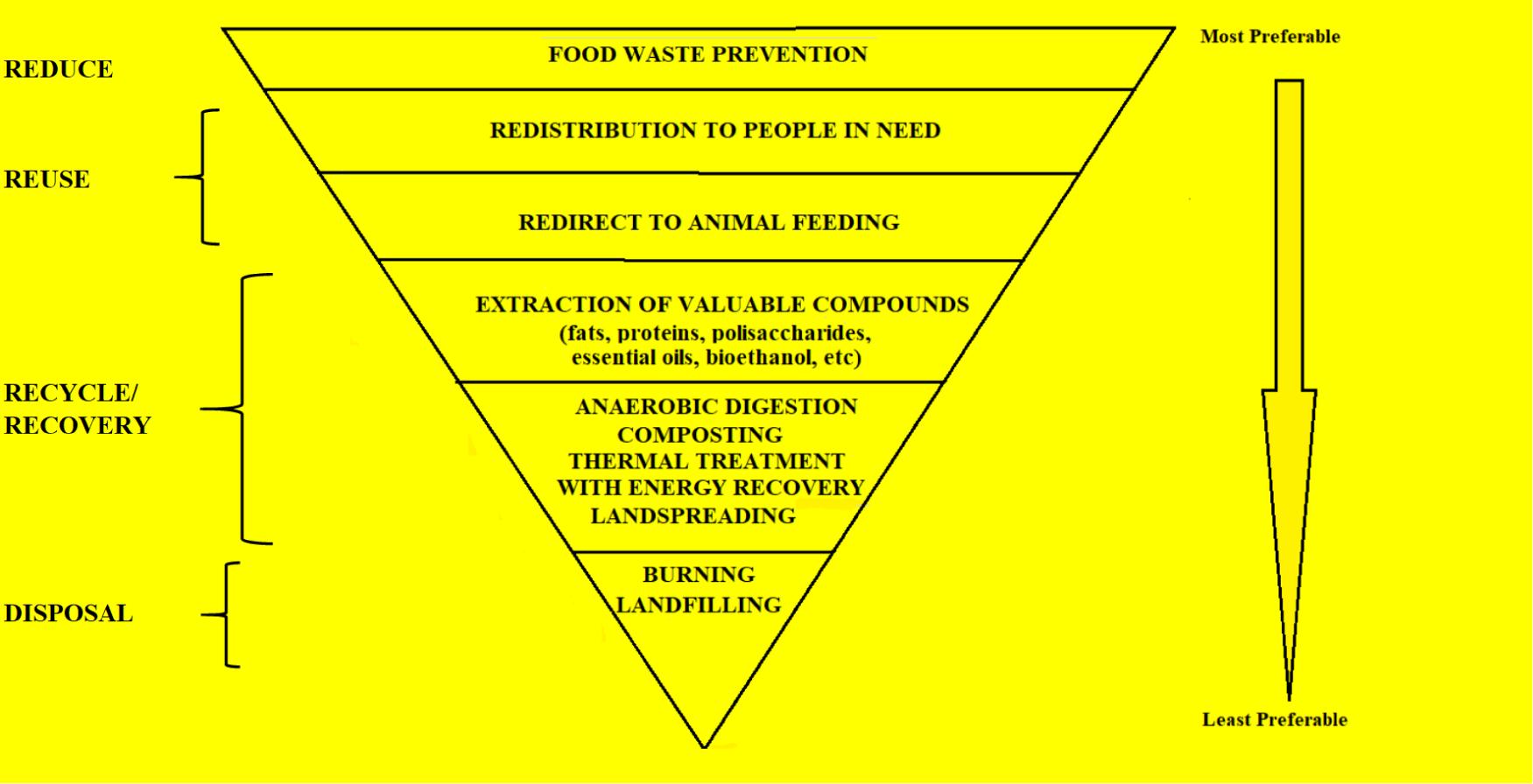 Figure 3. Food waste hierarchy used to select different waste management alternatives according to their environmental preference, as reworked by Garcia-Garcia et al. (2015).