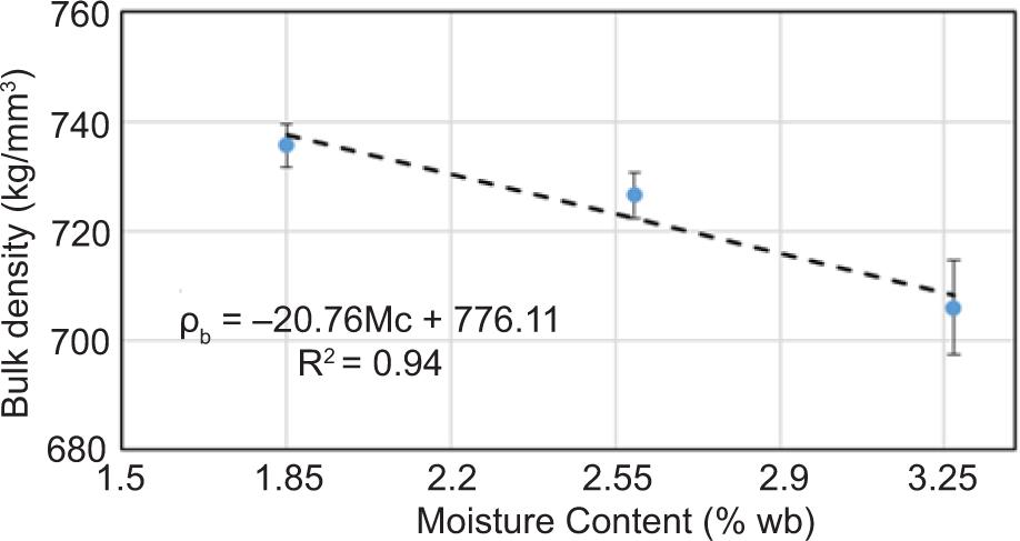 Figure 10. Effect of moisture content on the bulk density of T. chebula dried fruit.