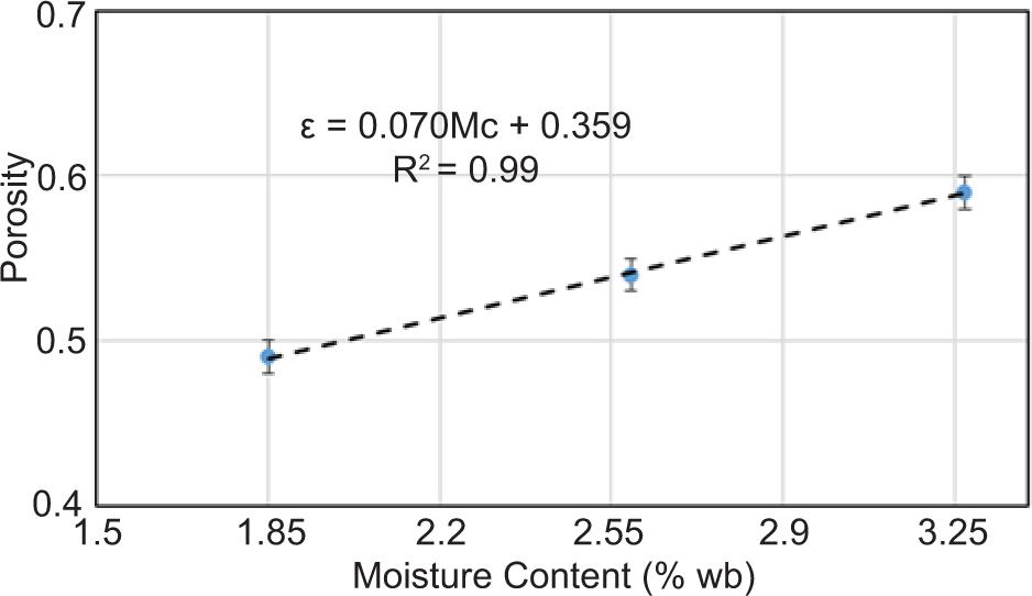 The porosity (ε, %) was determined using bulk density and true density values (Mohsenin, 1980; Selvi et al., 2020).