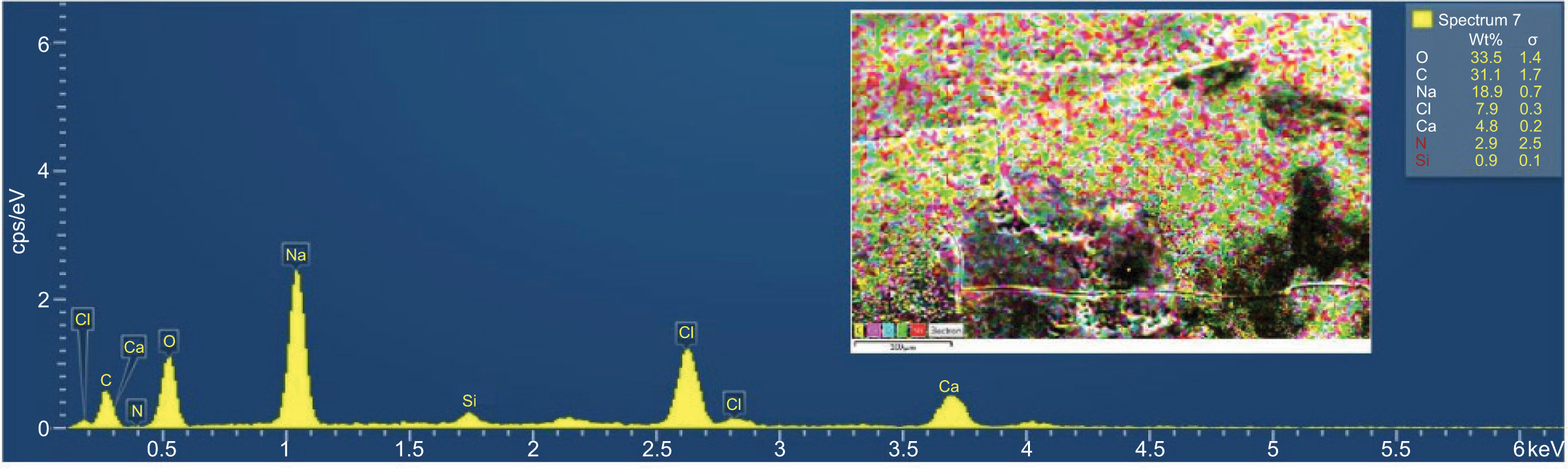 Figure 6. EDS image of vitamin B12-loaded, chitosan-grafted PAA.