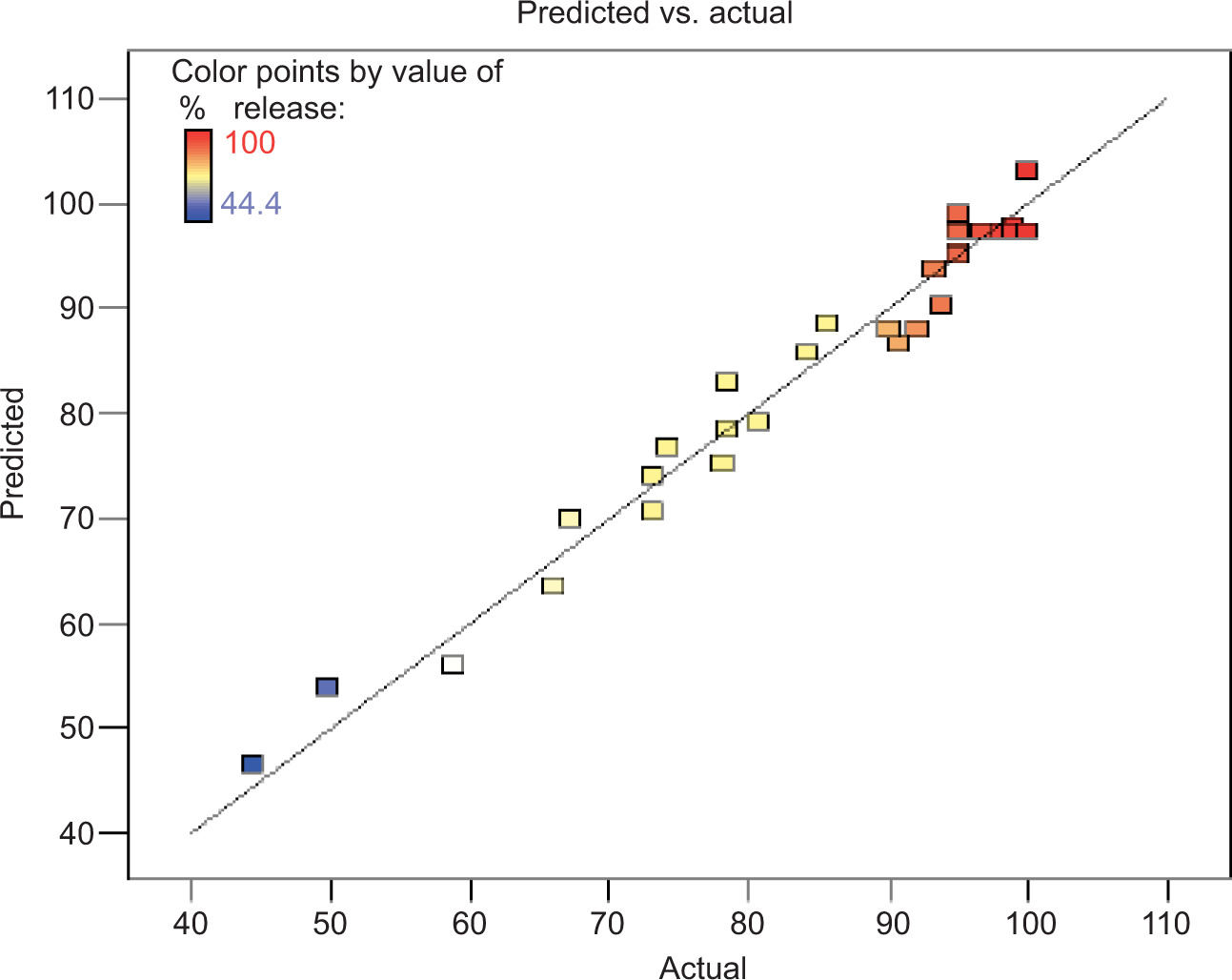Figure 7. The overlap ratio of the estimated and actual values obtained for vitamin B12-loaded biopolymers.