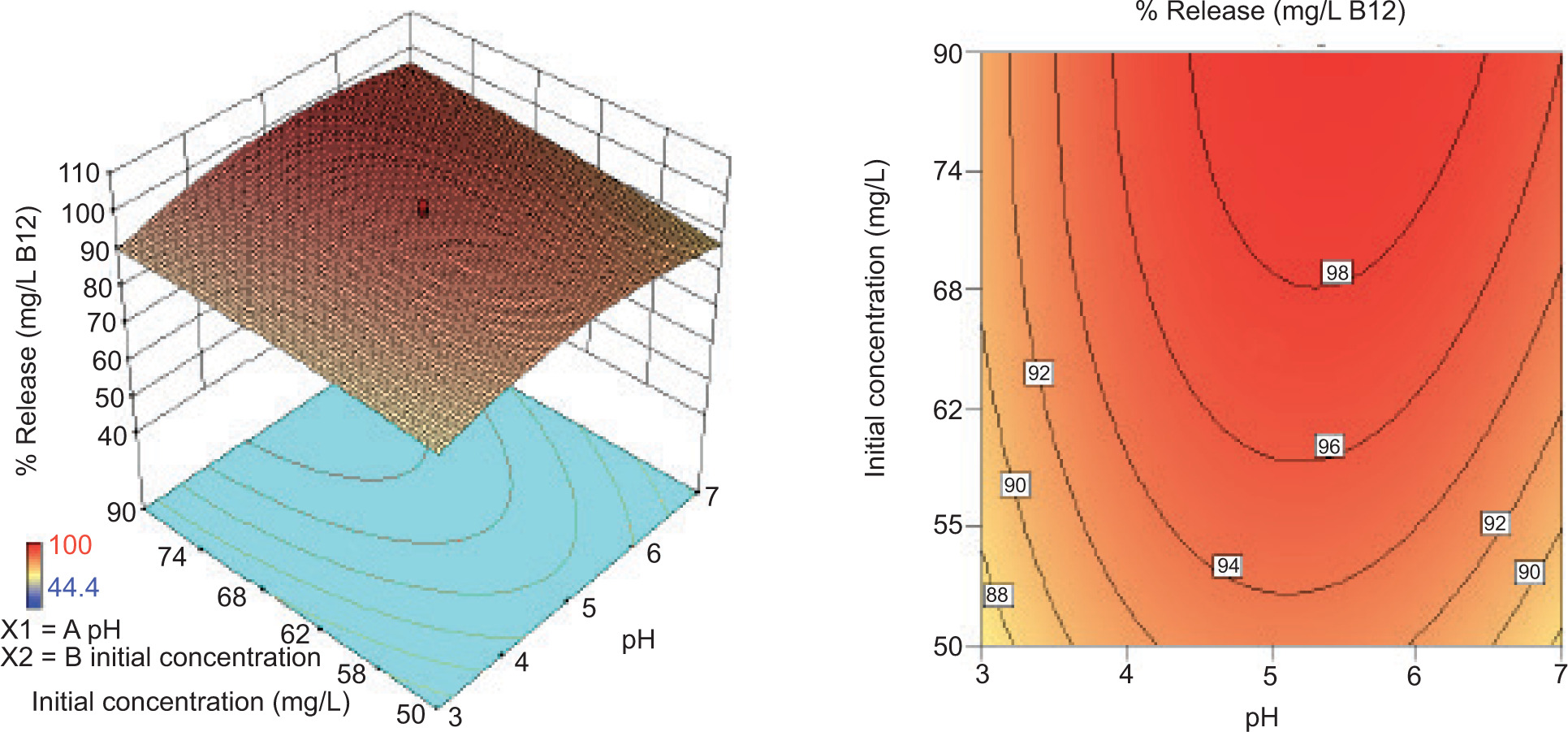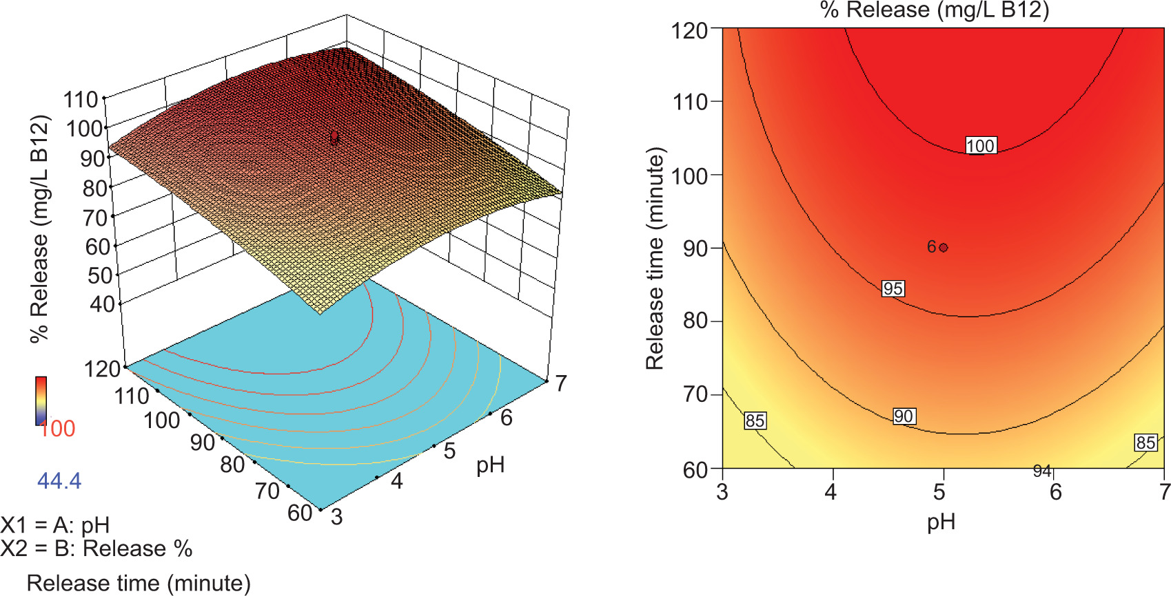 Data from the proposed three-factor CCD combined with RSM confirmed that optimization was an effective approach to model vitamin B12 release from pH-sensitive biopolymer, understanding the relationships between independent and response variables and maximizing process efficiency.