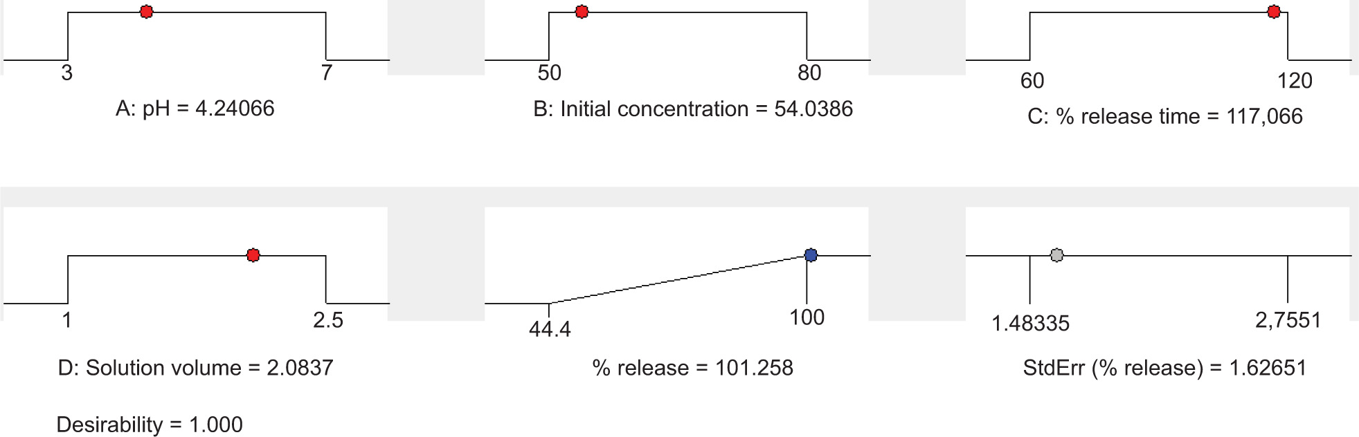 Figure 16. Ramp chart of statistically optimized factors for vitamin B12 release from biopolymers.