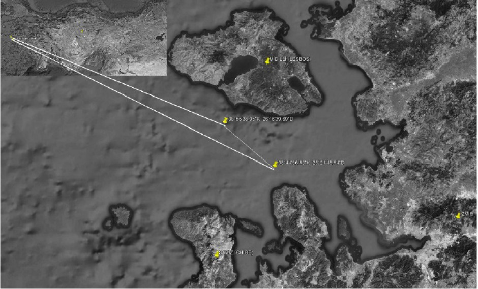 Figure 1. Sampling area. (38°55´38.95´´ N-26°6´39.69´´ E / 38°44´56.80´´N-26°21´48.54´´E).