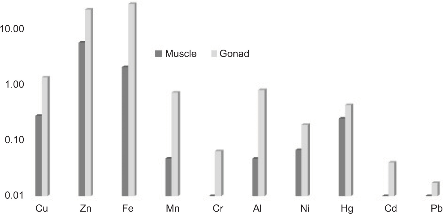 Key words: Aegean Sea, gonad, heavy metal, human health, marine fish, muscle tissue
