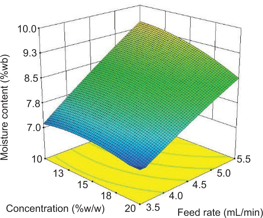 Table 2. Second-order regression coefficients for moisture content, process yield, and mean particle diameter.