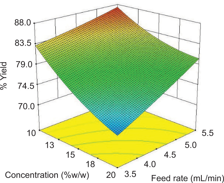 Figure 5. Process yield (%yield) as functions of binder concentration and feed.