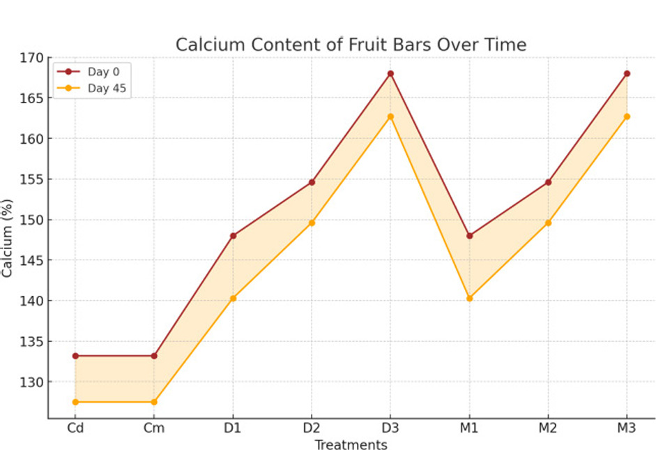 Figure 9. Results of calcium content of fruit bars.
