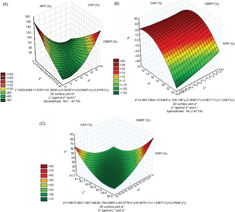 Results of the proximate chemical composition of different beef burger samples prepared by the addition of CMRP (2, 3, and 4%), RPP (1, 2, and 3%), and CAP are given in Table 3.