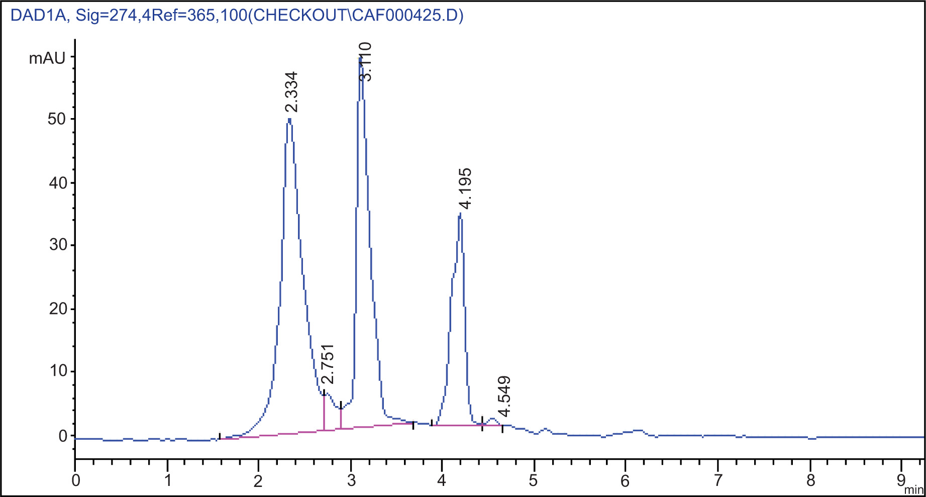 HPLC chromatogram of aflatoxins is shown in Figure 3.