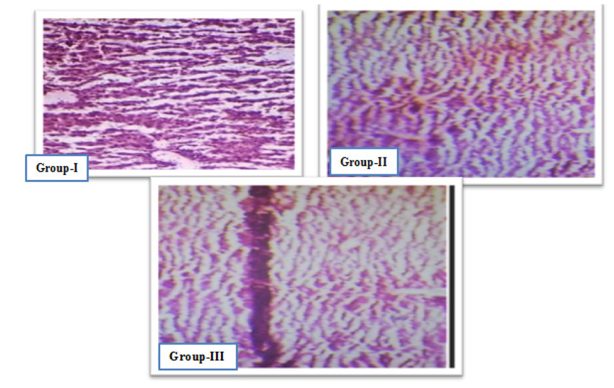 Histology of the liver and heart in group III mice showed that papillary muscles had few vacuolizations and a congested myocardial state (Figures 1 and 2).
