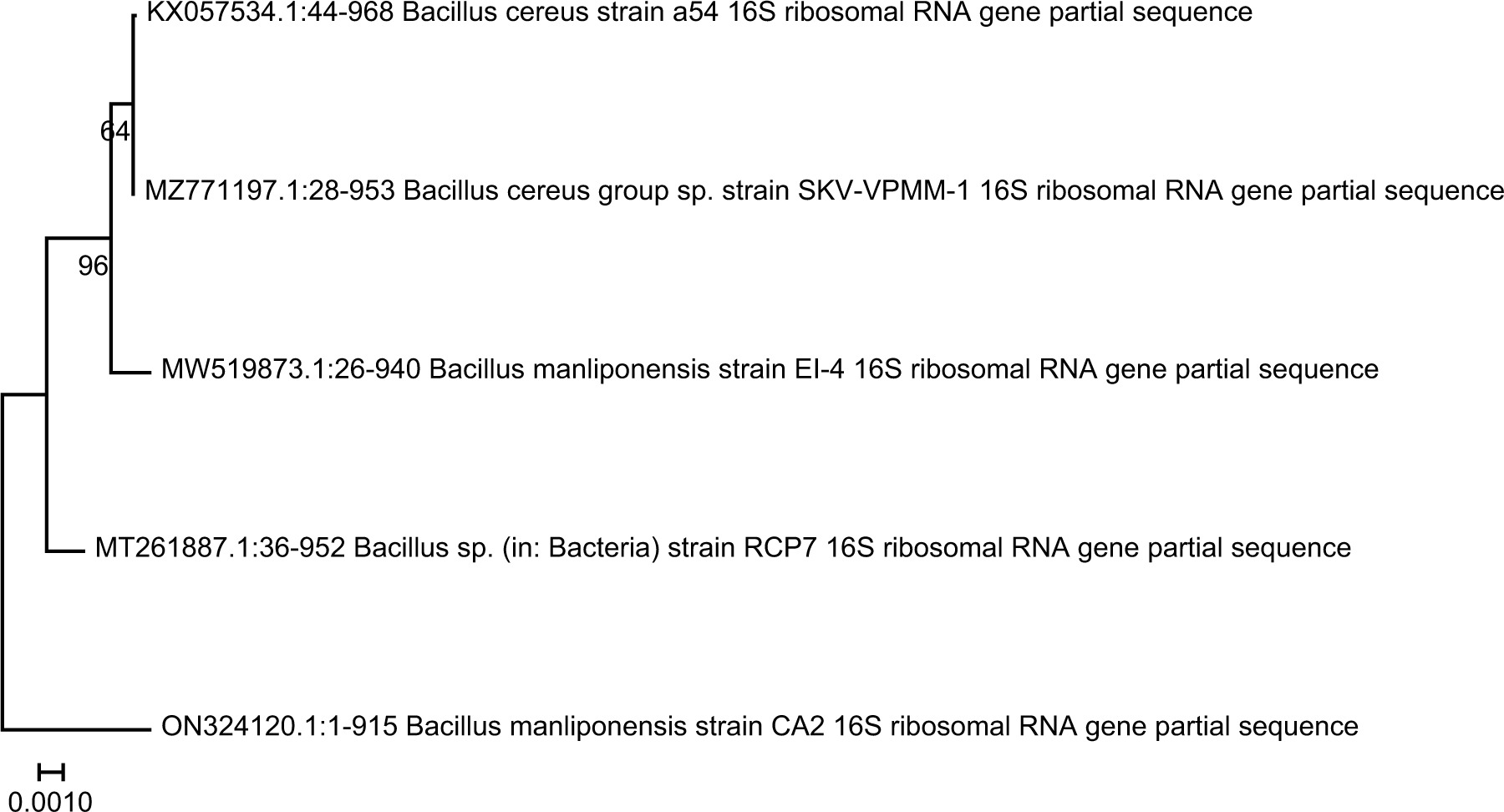 Figure 9. Phylogenetic tree representing CA2 (Bacillus manliponensis ON324120) cellulolytic isolate showing their evolutionary relationship with closely related species.
