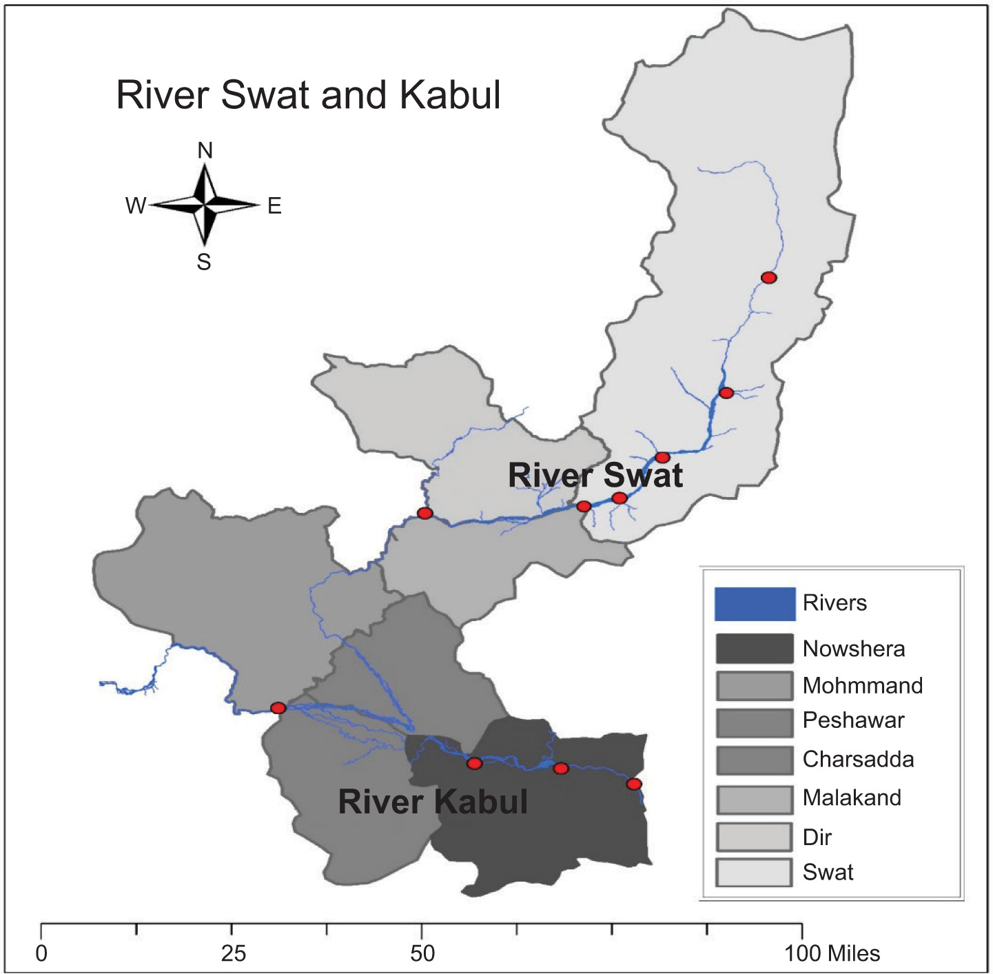 Figure 1. Sampling locations at Swat and Kabul rivers.
