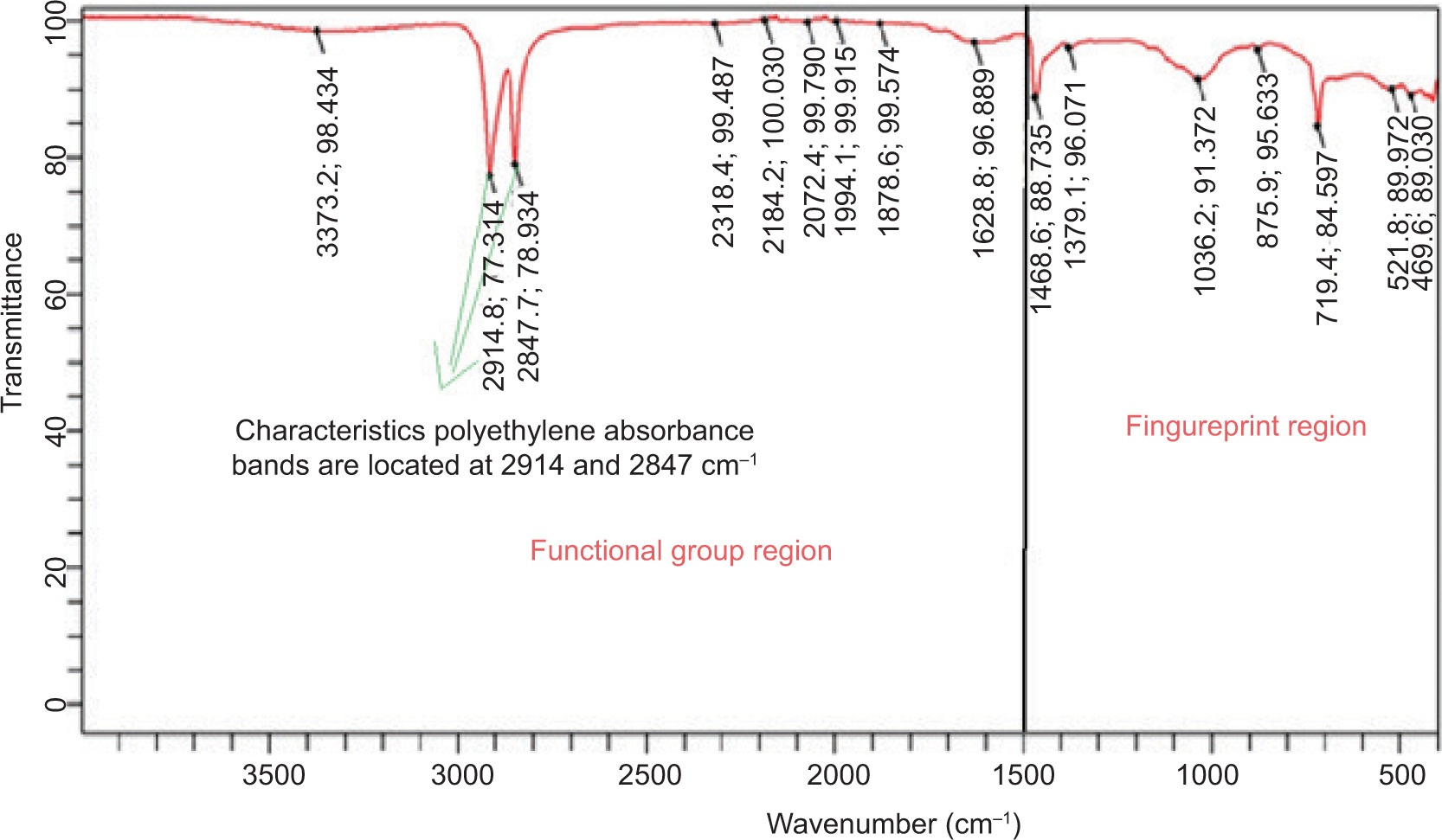 Figure 4. FTIR spectra confirming polyethylene (PE) type of microplastics.