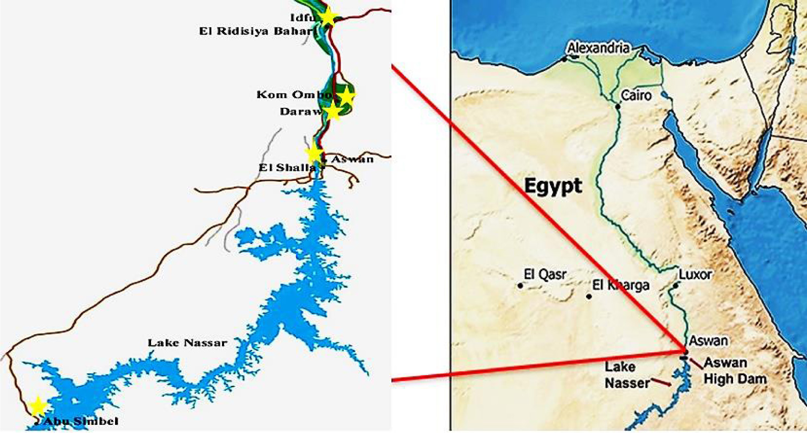 Figure 1. Sampling sites (yellow star), Aswan map, Egypt.