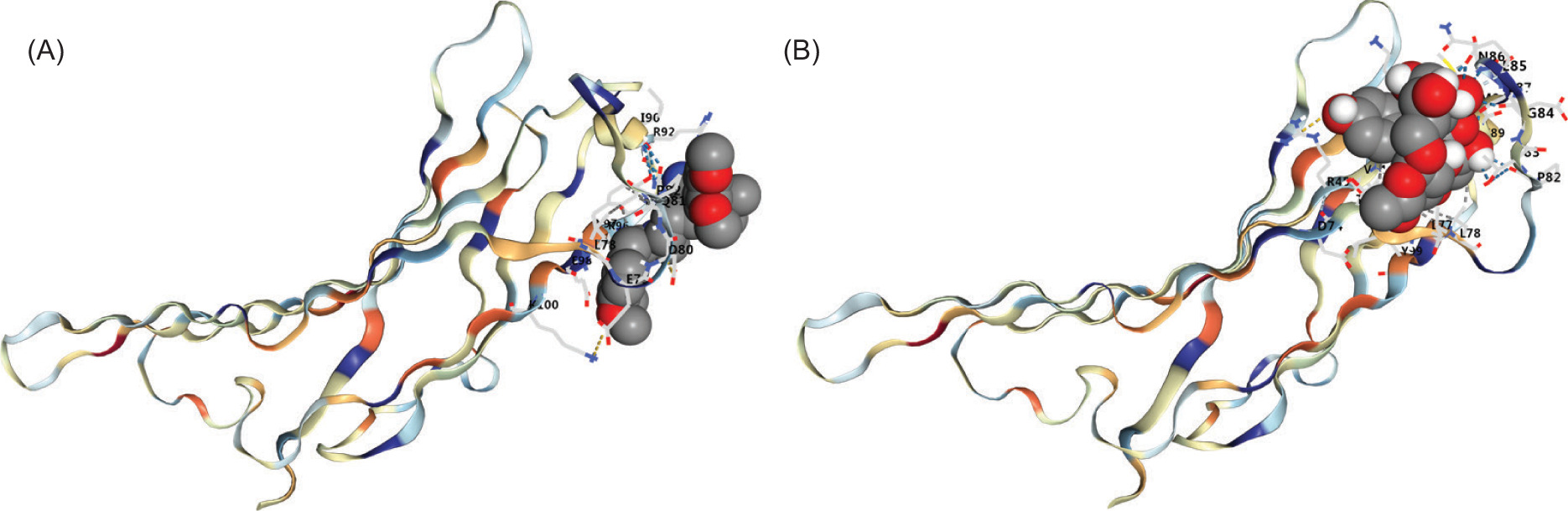 Figure 1. Docking of KR to TXNIP. (A) Verapamil (B) KR.