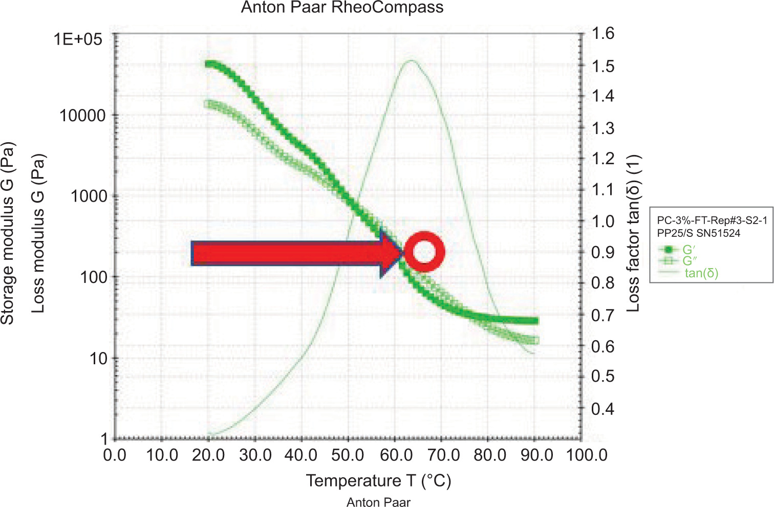 Figure 2. Measuring the melting point of the processed cheese using dynamic rheological analysis.