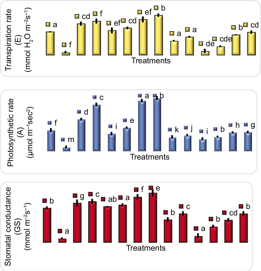 The net transpiration rate, photosynthetic rate, and stomatal conductivity were measured from 12:00 noon to 1:00 p.m. from the highest fully extended leaf via a portable gas exchange analyzer (LCA-4 System; ADC, Ltd. 12 Spurling works, Pindar Road, Hoddesdon, Herts, UK) (Rehana et al., 2022).