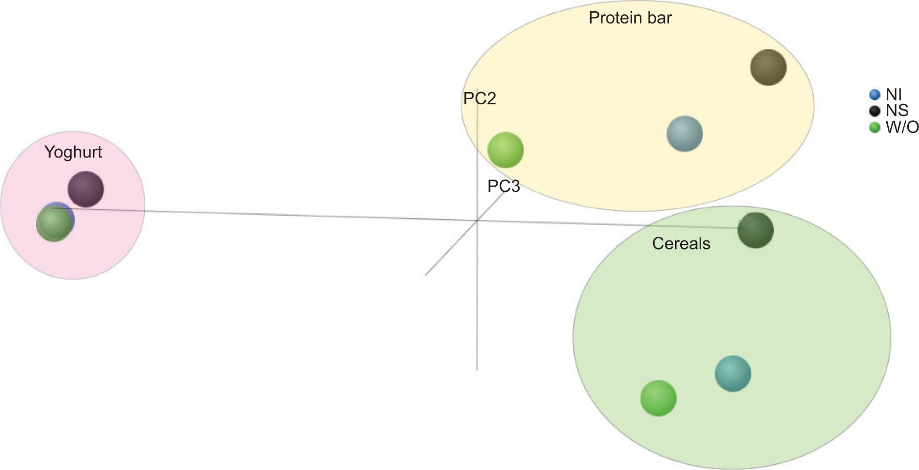 From the aforementioned data, the influence of FoPL seems to vary among various items. Figure 6 demonstrates that the component scores obtained from the principal component analysis reveal that the consumer’s preference for yogurt remains consistent across all three labeling scenarios. However, the most noticeable variations are observed in the case of protein bars. When it comes to cereals, the NutriScore variation attains a distinct significance. Simultaneously, it can be inferred from the aforementioned that there is no apparent cross-product impact in the selection. When comparing product categories, bars and cereals are mostly consumed by those who are interested in maintaining a healthy diet. The yogurt product category is well-recognized by all customers. This observation was also evident in the findings, as the preferences for cream yogurt were unaffected by any kind of FoPL. Slovaks consider cream yogurt to be a traditional delicacy that they enjoy for breakfast, during the day, or in the evening as a sweet treat while watching TV, without considering its nutritional content. Simultaneously, most customers consider cream yogurt as a more healthful option compared to low-fat yogurt. They contend that natural ingredients, such as cream, provide more benefits to human health than artificial sweeteners.