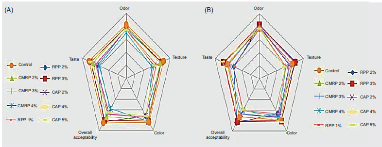Results of the proximate chemical composition of different beef burger samples prepared by the addition of CMRP (2, 3, and 4%), RPP (1, 2, and 3%), and CAP are given in Table 3.