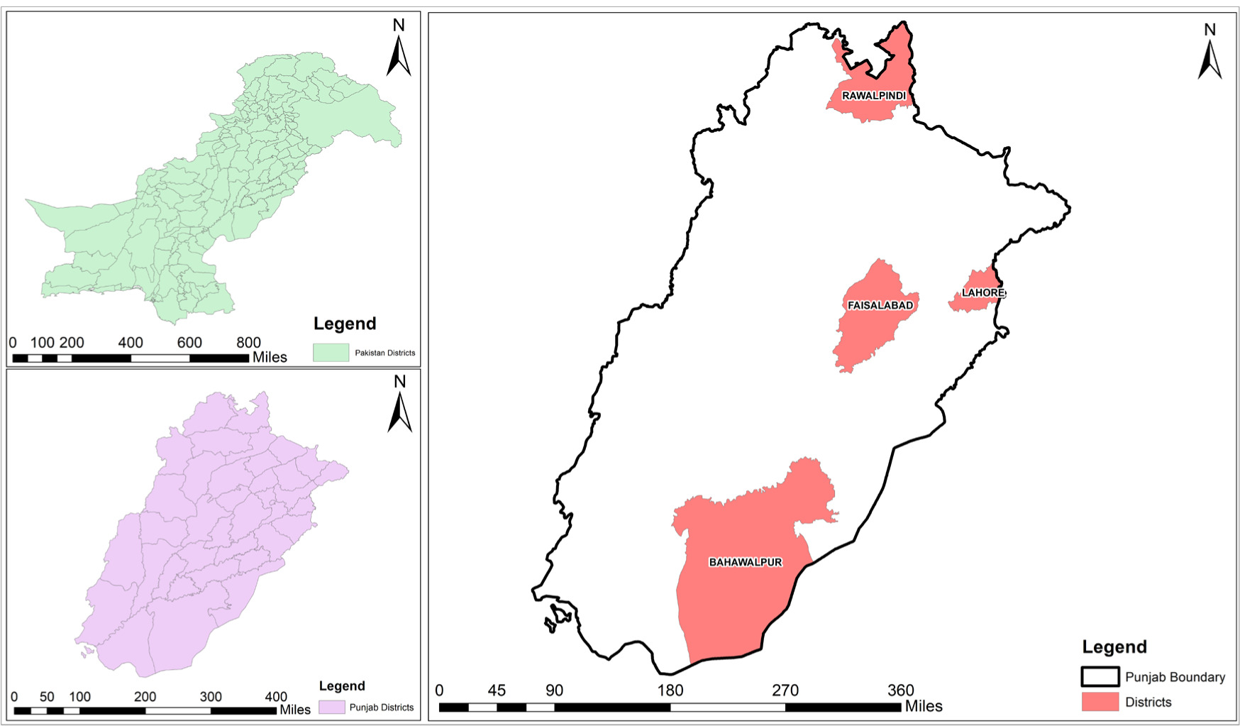 Figure 1. Map showing sample collection districts of Punjab, Pakistan.